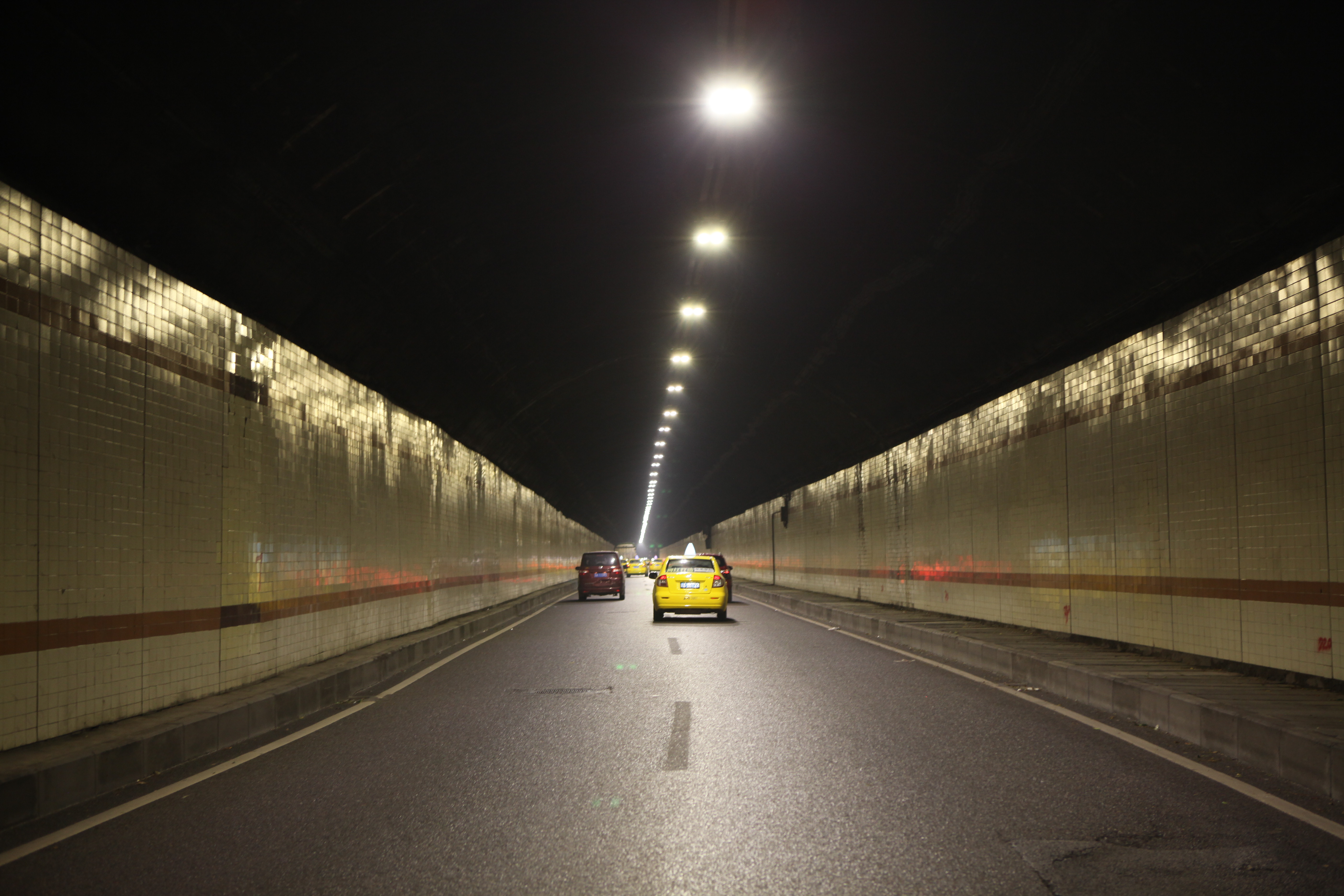 The energy-saving renovation project photo-realistic of Internet+multi-colored temperature prevent fog and haze LED full intelligent street lamp in Longjiawan tunnel in Yuzhong distaict of Chongqing