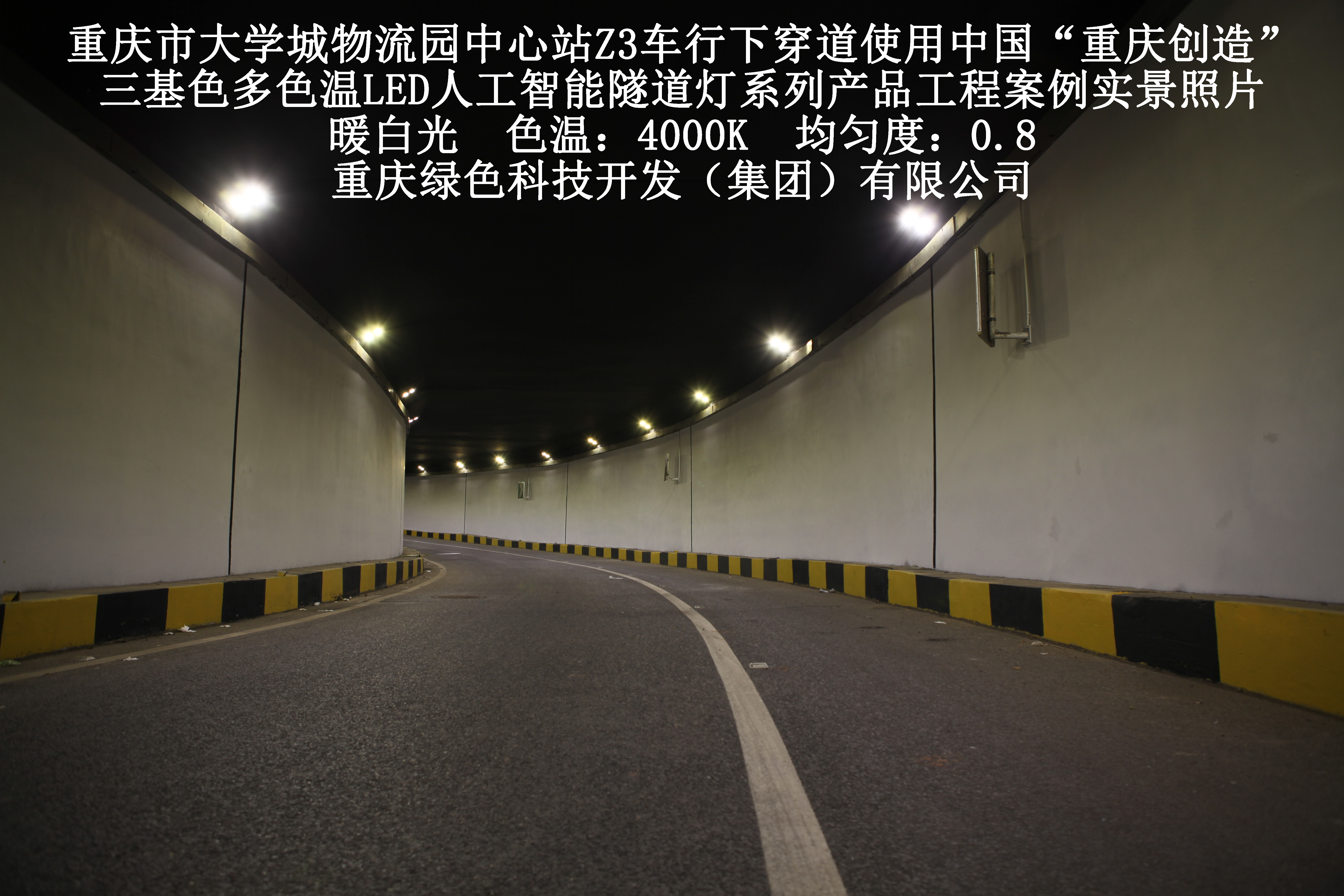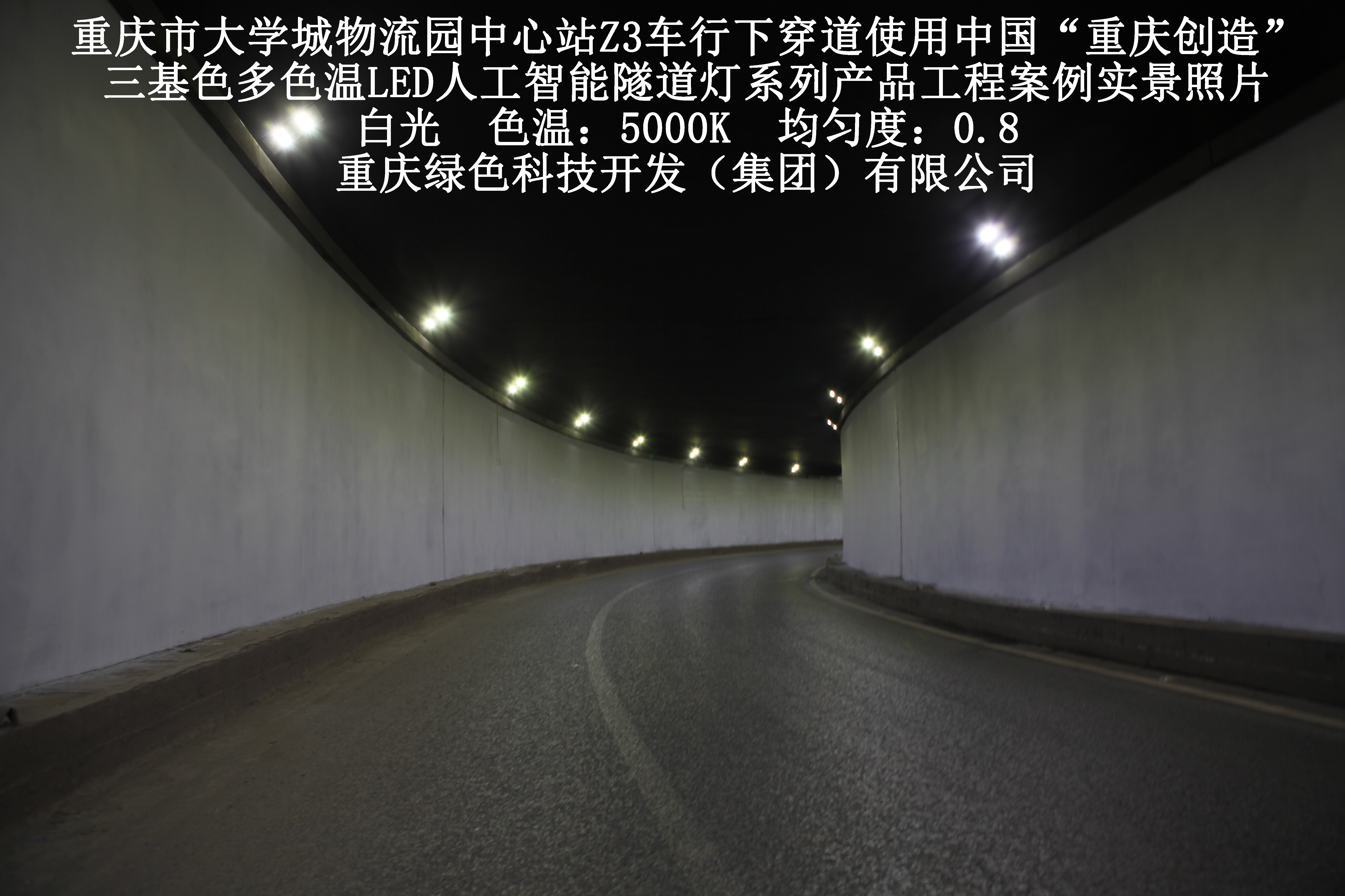 2019年3月,重慶市大學(xué)城物流園中心站Z3車行下穿道使用我司自主研發(fā)制造的,重慶“中國(guó)創(chuàng)造”三基色多色溫LED人工智能隧道燈系列產(chǎn)品,實(shí)施了市政設(shè)施品質(zhì)提升工程(工程案例實(shí)景照片附后)。此項(xiàng)目的實(shí)施,極大地提高了隧道內(nèi)照明清晰度、燈光均勻度、舒適度及照明安全性,實(shí)現(xiàn)了隧道照明系統(tǒng)的智能化管理。