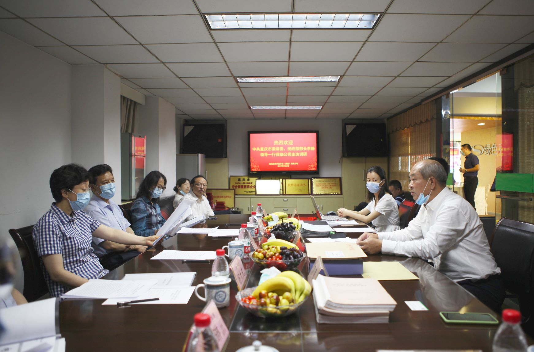9月10日,中共重慶市委常委、統(tǒng)戰(zhàn)部部長李靜蒞臨重慶綠色科技開發(fā)(集團(tuán))有限公司走訪調(diào)研,中共重慶市委統(tǒng)戰(zhàn)部副部長、市僑聯(lián)黨組書記史全波,中共重慶市委統(tǒng)戰(zhàn)部副部長、市僑辦主任楊大慶,中共重慶市渝中區(qū)委常委、區(qū)統(tǒng)戰(zhàn)部部長章琳一同隨行。會上董事長鄧明鑒分別匯報了企業(yè)生產(chǎn)經(jīng)營、向貧困縣扶貧捐助及個人參政議政情況,李靜常委在聽取匯報后對公司利用自主知識產(chǎn)權(quán)研造的多色溫全光譜LED智能照明先進(jìn)技術(shù)表示贊賞,對鄧明鑒董事長認(rèn)真履行多項職務(wù)所做的工作,堅持做好參政議政、捐助貧困縣,助力脫貧攻堅、服務(wù)經(jīng)濟(jì)社會發(fā)展、協(xié)調(diào)各方化解社會矛盾,予以肯定。
